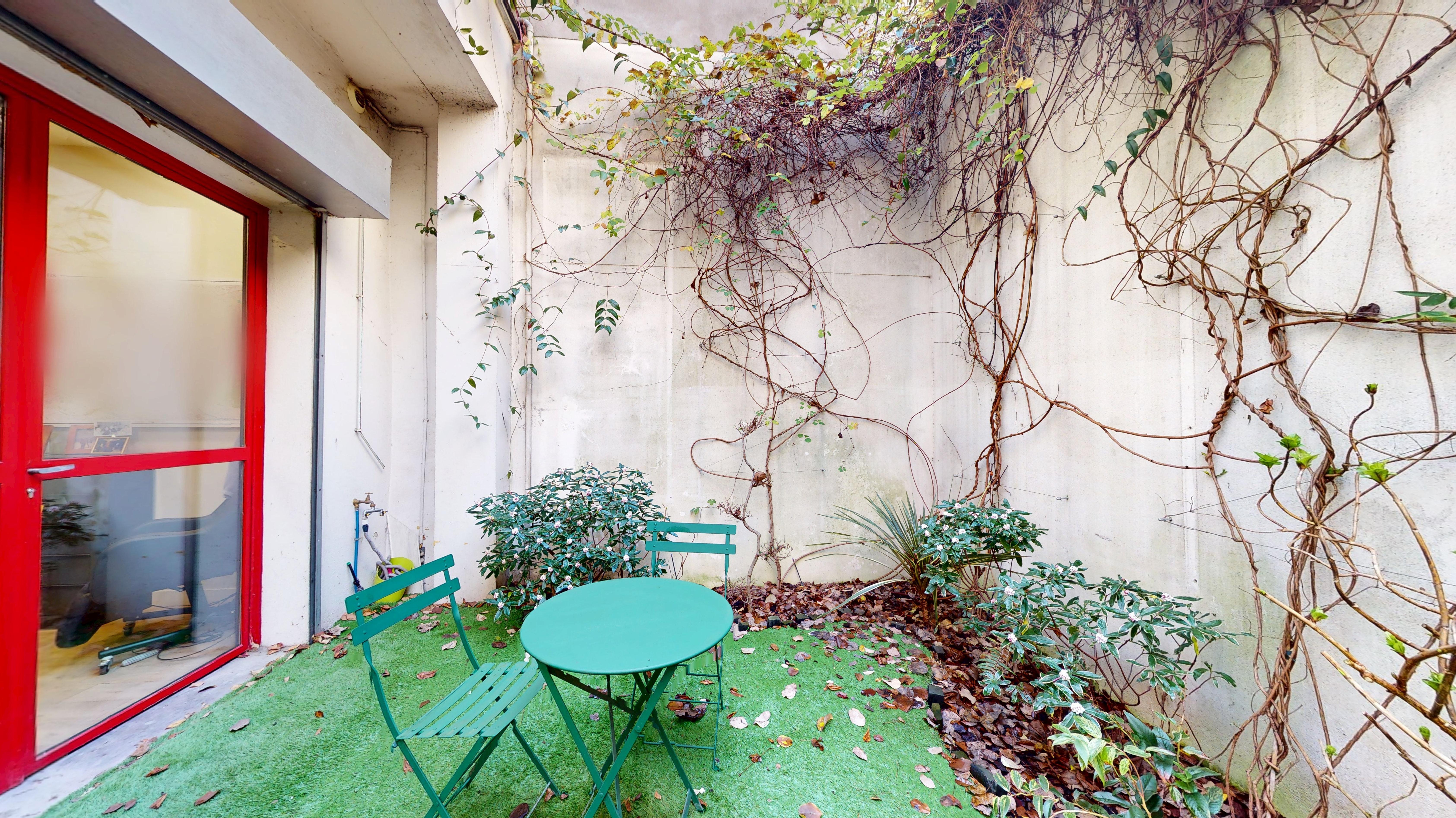 À l’arrière du local, accessible directement depuis les bureaux, se trouve une cour privative arborée d’environ 34,4 m², véritable atout rare à Paris, offrant un cadre bucolique et apaisant. Cet espace extérieur est parfaitement adapté aux pauses, réunions informelles ou moments de détente.